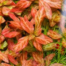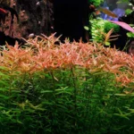 Ludwigia inclinata ‘Dark Orange’ (also ‘Atlantis’) is a vibrant stem plant for aquariums, known for its narrow, lance-shaped leaves that turn intense orange to deep red/wine-red under strong light and rich nutrients, creating bold midground/background accents. It grows relatively fast, benefits from regular pruning for bushiness, and requires good fertilization (especially iron) to achieve its stunning coloration, making it a moderately demanding but rewarding choice for aquascaping.